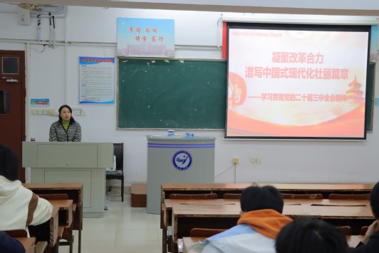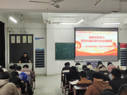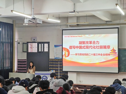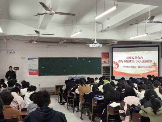 (学生通讯员 欧阳昱舜 杜洁瑜)为引导广大青年学生学习领悟党的二十届三中全会精神,按照学校安排,11月20日下午,我院以形势政策课宣讲方式,分五个场次在青年学生中开展了党的二十届三中全会精神专题宣讲活动。院党委书记黄良辉、党委副书记陶华蕾、专职组织员付磊清和学生事务办副主任梁辉、辅导员简心怡分别担任主讲人,我院2023、2024级全体学生900余人参加学习。
